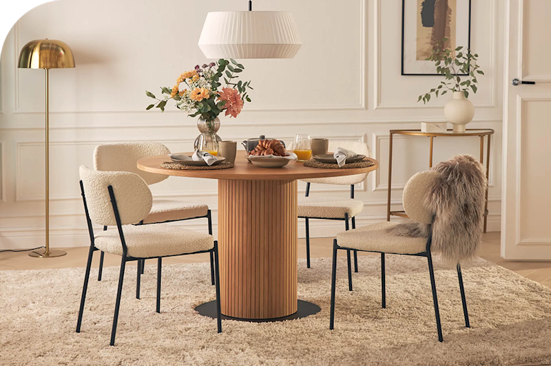 Finn matchende spisestoler som fremhever hele spiseplassen. Velg enten samme materiale og stil som spisebordet ditt, eller du kan ta et dristig valg og la spisestuestolene skille seg ut og gjøre et blikkfang.
