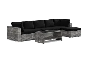 Bahamas utendørs hjørnesofa 5-seters vendbar med åpen avslutning og bord med hylle, Svart