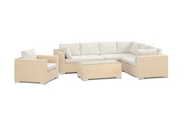 Bahamas utendørs L-sofa høyre 7-seters med lenestol og bord, Beige