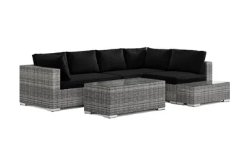 Bahamas utendørs hjørnesofa 6-seters vendbar og bord med hylle, Svart