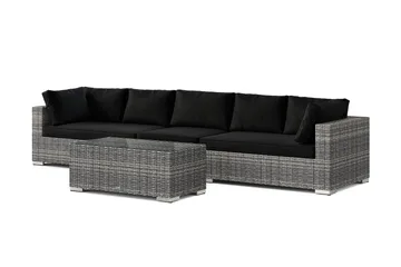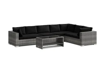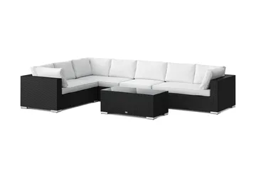 Bahamas L-formet utesofa høyre, 7-seters med bord og hylle, Svart