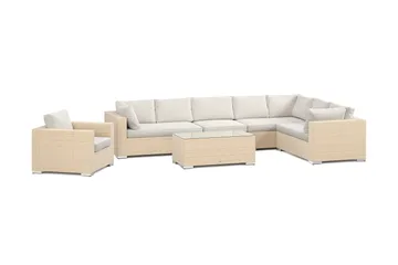 Bahamas utendørs L-sofa venstre 8-seters med lenestol og bord, Beige