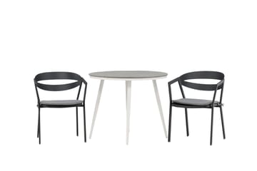 Break Cafégruppe Rund 90 cm + 2 Lindos Karmstol, Svart/Grå