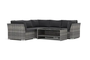 Bahamas utendørs hjørnesofa 5-seters vendbar med åpen avslutning og bord med hylle, Grå