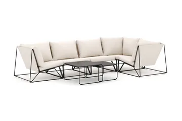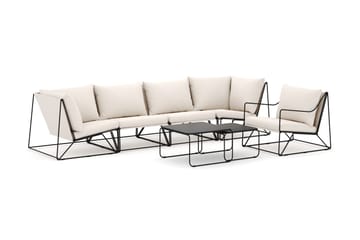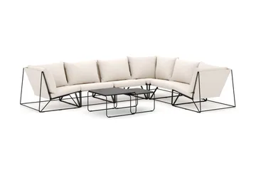 Usteryd utendørs U-sofa 6-seters med lukket avslutning, Svart/Beige