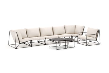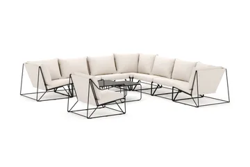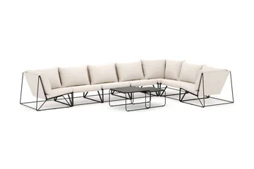 Usteryd utendørs U-sofa 7-seters med lukket avslutning, Svart/Beige