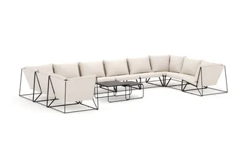 Usteryd utendørs U-sofa 9-seters med lukket avslutning, Svart/Beige