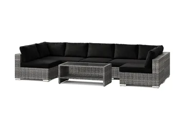 Bahamas utendørs sofagruppe 6-seters med to lenestoler og bord, Svart