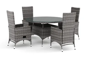 Thor utendørs rund spisegruppe 140 cm med 4 Jenny spisestoler, Grå