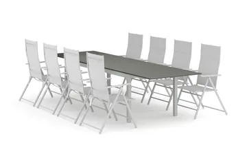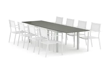 Las Vegas utendørs spisegruppe, uttrekkbar 220x280x100 cm med 8 Las Vegas stablebare stoler, Hvit