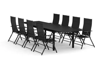 Tunis utendørs spisegruppe, uttrekkbar 205/305x90 cm med 8 posisjonsstoler, Svart/Svart