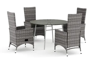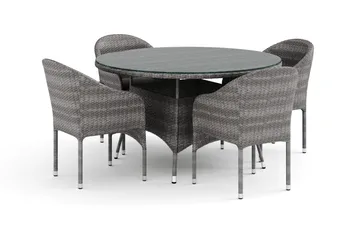 Thor utendørs rund spisegruppe 140 cm med 4 Thor Light utefåtöljer, Grå