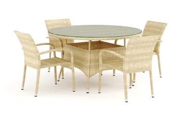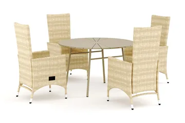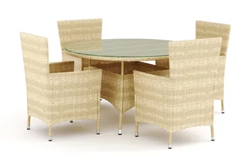 Tunis utendørs rund spisegruppe 120 cm med 4 Thor utendørs lenestoler, Beige/Beige