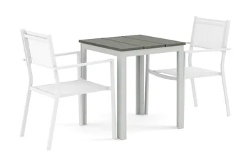 Tunis utendørs kafésett 70x70 cm med 2 Oliver karmstoler, Hvit/grå