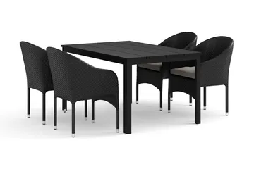 Tunis utendørs spisegruppe 140x90 cm med 4 Thor lenestoler, Svart/svart