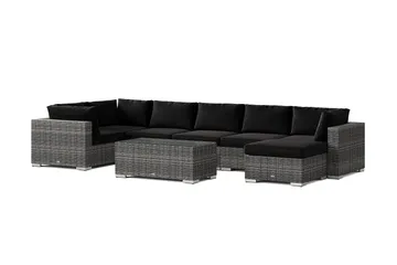 Bahamas U-formet utendørs loungegruppe 7-seters med vendbar divan og bord, Grå