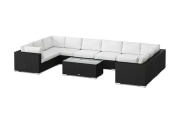 Bahamas U-formet utendørs loungegruppe med lukket avslutning, 9-seters med bord og hylle, Sand