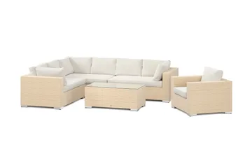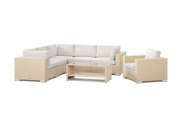Bahamas utendørs hjørnesofa 6-seters vendbar med lenestol og bord med hylle, Sand