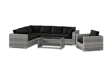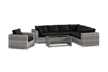 Bahamas utendørs hjørnesofa 6-seters vendbar med lenestol og bord, Grå