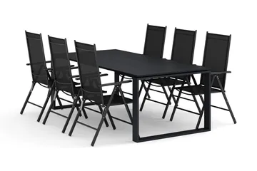Devon utendørs spisegruppe 210x100 cm med 6 Maggie posisjonsstoler, Svart
