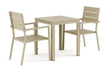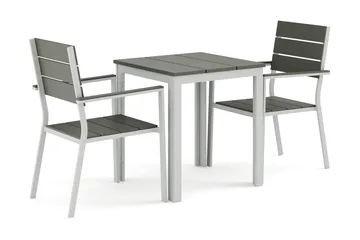 Tunis utendørs kafésett 70x70 cm med 2 Tunis stablestoler, Hvit/grå