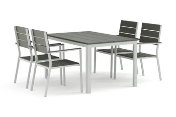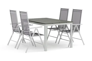 Tunis utendørs spisegruppe 140x90 cm med 4 Tunis stablebare stoler, Hvit/grå