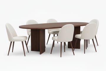 Kopparbo Rundt Spisebord 150 cm med 6 Winston Spisestoler, Hvit / Beige / Metallben Svart