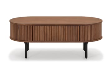 Sofabord Neandir 118 cm Ovalt med Oppbevaring Skuff, Massiv Valnøtt/Svart