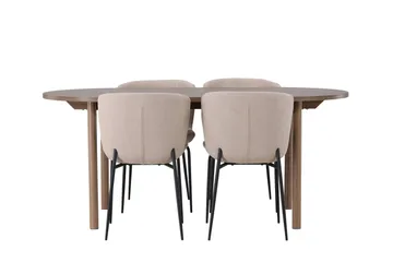 Når du kjøper en oval spisegruppe, bør du tenke på hvor mange som får plass ved bordet og hvor mange sitteplasser du trenger. Et ovalt spisebord med ileggsplate kan være et smart og praktisk alternativ hvis dere bare er to i husstanden men ofte har gjester på besøk. Dersom du ikke trenger å forlenge spisebordet, kan det likevel være greit å huske på at en oval spisegruppe med fire eller seks stoler ofte har plass til to ekstra sitteplasser på de avrundede kortsidene. Ønsker du to seter på hver kortside, bør spisebordet være minst 100 cm bredt.