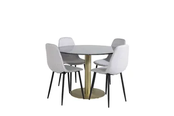 Estelle Spisegruppe 106 cm Rund med 4 Polar Stoler, Sort/Guld