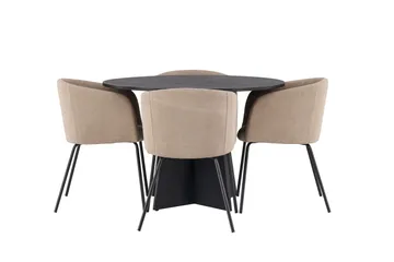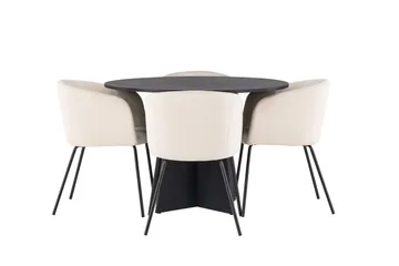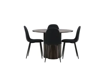 Olivia Spisegruppe 110 cm Rund med 4 Polar Stoler, Sort