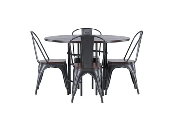 Stone Matgruppe 120 cm Rund med 4 Montros stoler, Sort