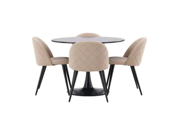 Glade Spisegruppe 100 cm Rund med 4 Velvet Stoler, Beige