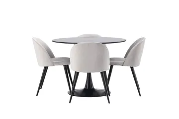 Marbs Spisegruppe 110 cm Rund med 4 Velvet Stoler, Grå