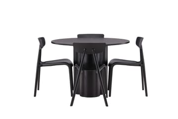 Olivia Matgruppe 110 cm Rund med 4 Montros Stoler, Sort