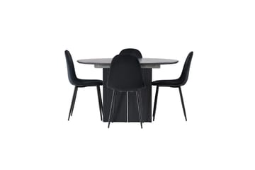 Olivia Spisegruppe 110 cm Rund med 4 Edina Stoler, Svart