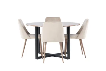 Lycke Spisegruppe 110 cm Rund med 4 Modesto stoler, Beige/Svart