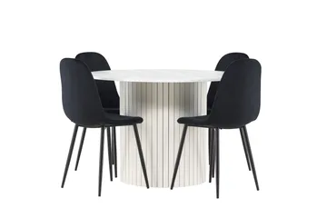 Lanzo Spisegruppe 120 cm Rund med 4 Berit stoler, Whitewash/Sort