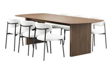 Spisegruppe Copenhagen Rund 140 cm med 6 Astoria-stoler Hvit / Svart, Brun, Hvit / Svart, Brun
