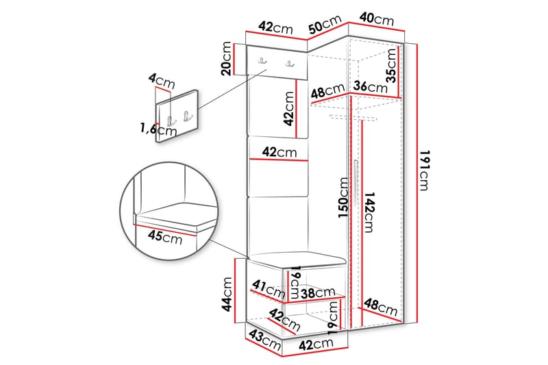 • Inngår i pakken: 1x Garderobeskap, 1x Skohylle, 1x Klesstativ