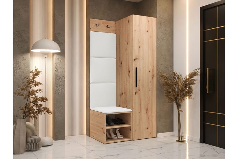 1x Garderobeskap, 1x Skohylle, 1x Klesstativ