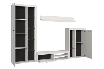 - Inngår i pakken: 2x Vitrineskap,1x TV-benk,1x Vegghylle