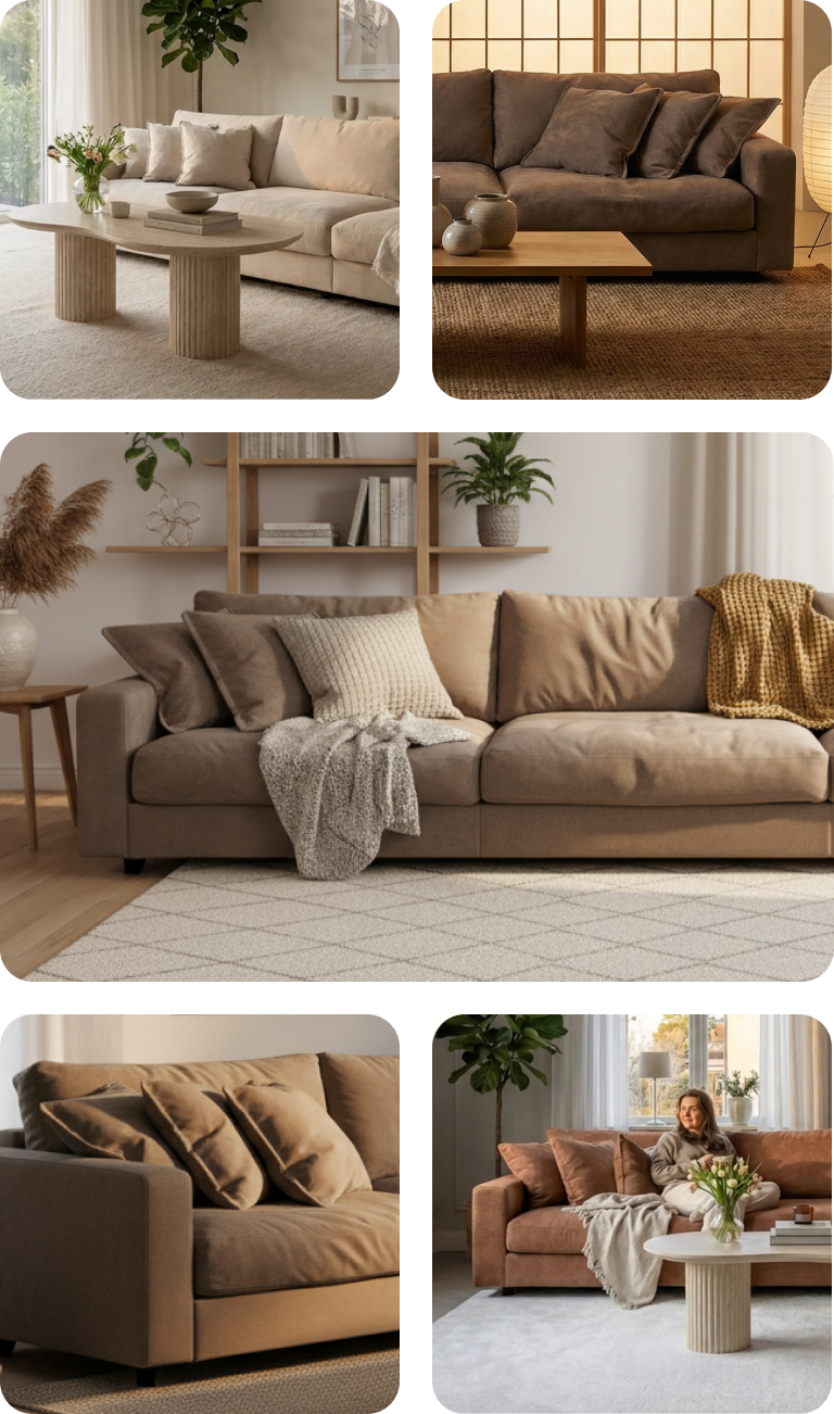 Valencia er en serie ekstra dype sofaer og lenestoler som raskt blir hjemmets naturlige samlingspunkt. Den generøse størrelsen og den dype sitteflaten gjør at du sitter komfortabelt – enten det er en hverdagskveld eller en langfilm i helgen.
