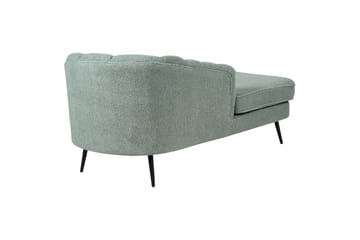 Elegant sjeselong i boucle. Denne elegante sjeselongen er et flott element i enhver stue eller på soverommet. Bouclé-trekk i en tidløs grønn farge kombinert med svarte metallben og skaper en luksuriøs sofa som vil pynte opp i omgivelsene. Stolen har en slitesterk ramme og en myk, tykk polstring som garanterer god sittekomfort. Sett den enten i stuen eller på kontoret for å fremheve omgivelsene med et glamorøst preg.
