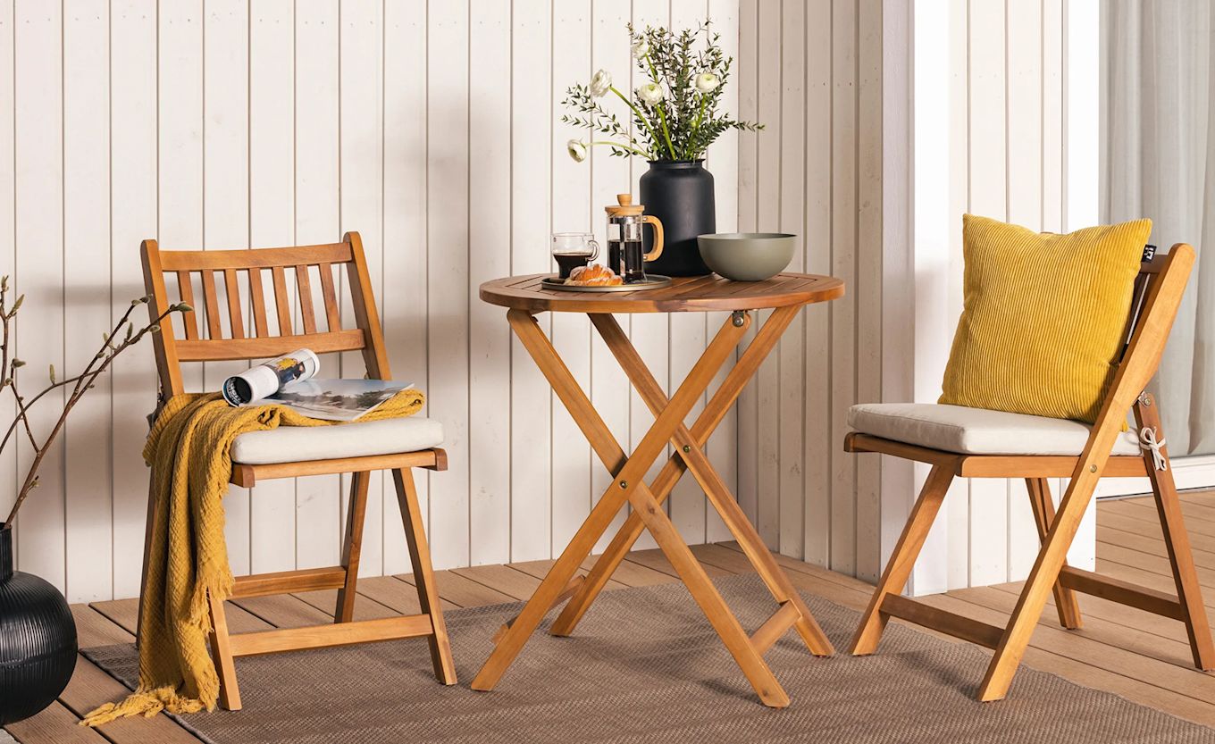 Med en liten kafégruppe kan du maksimere plassen på balkongen din. Flere av våre kafégrupper har sammenleggbare stoler og bord som tar minimalt med plass når de ikke er i bruk. Vi har også større balkongmøbler for den litt større terrassen der du kan samle dine nærmeste.