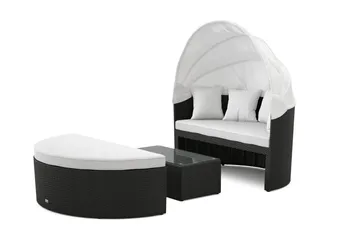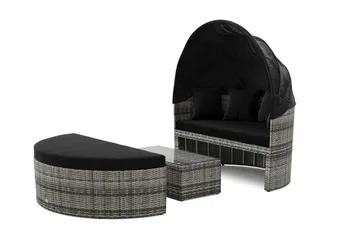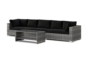Bahamas utesofa 5-seters med bord og hylle, Svart